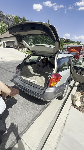 Into the Subaru we are rolling our 2' x 6' Body Board.